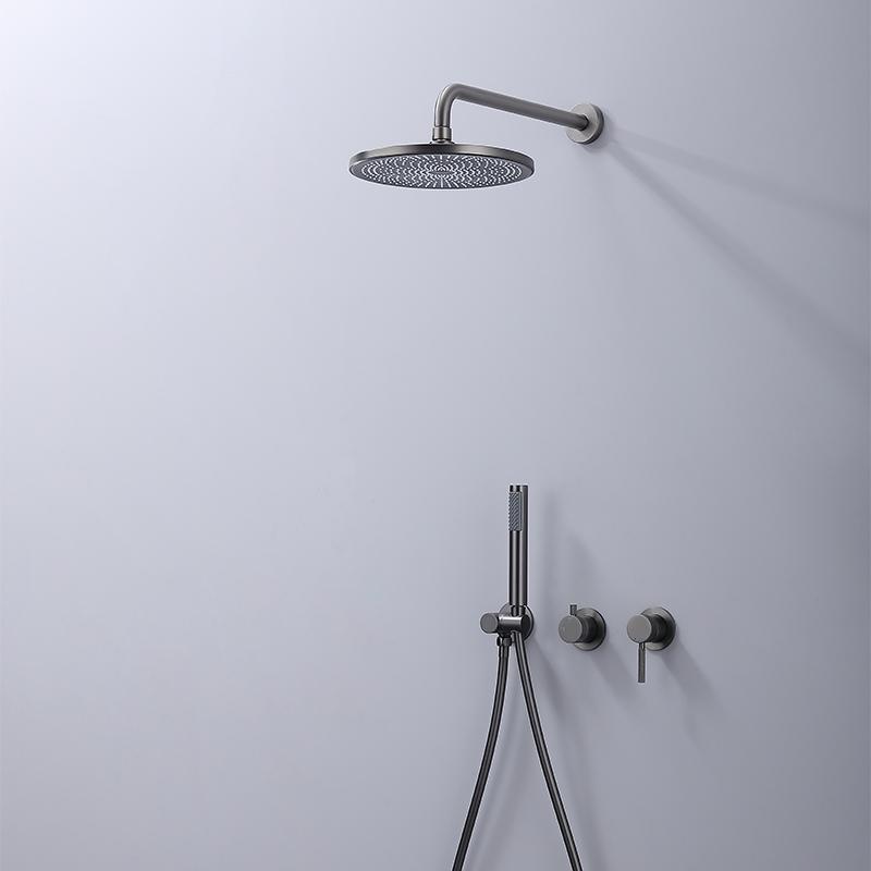 Concealed bathroom shower mixer set with 2 handles. Gun grey