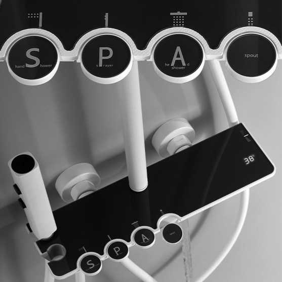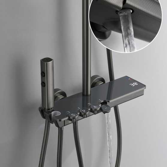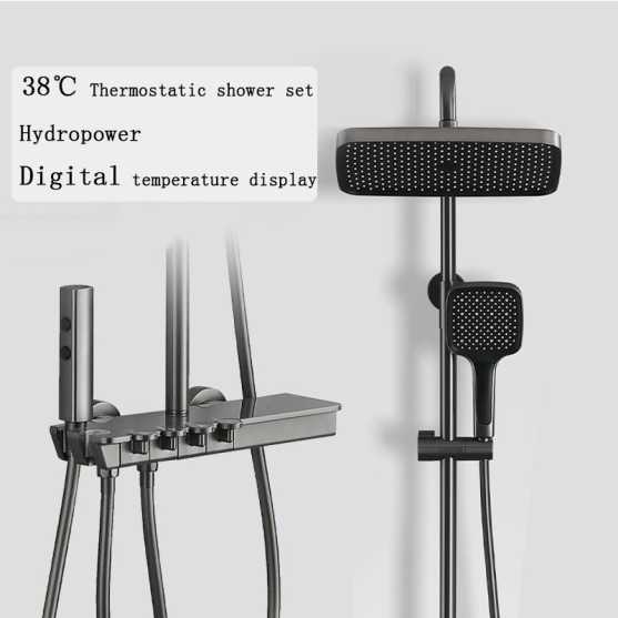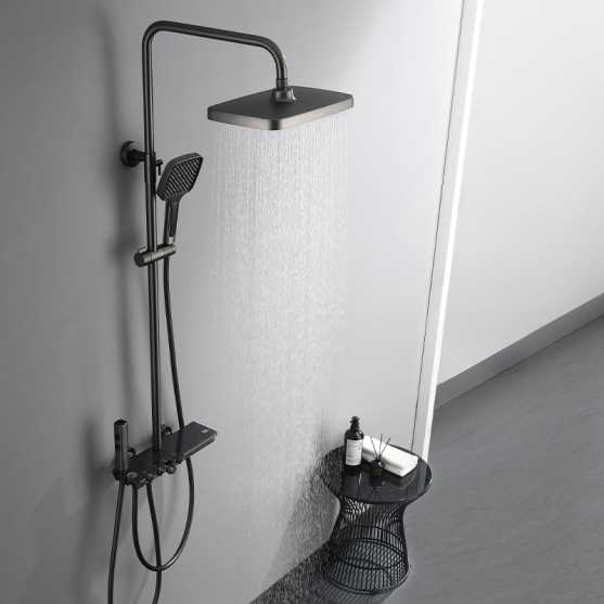 Luxury thermostatic shower mixer set with 4 functions:Tub spout+High pressure bidet sprayer+Rainfall shower head+3 modes handheld shower.