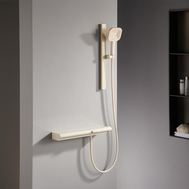 Multifunctional bathroom rainfall shower system. 3 functions thermostatic shower mixer set with slide bar can adjust different height according to your personal need. With 3 modes handheld shower and tub spout. Also with digital temperature display. Elegant and Unique design is suitable to different styles of houses.